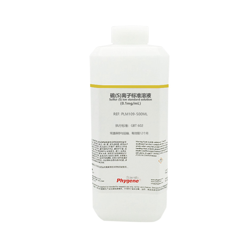 | 产品名称 : | PLM109 | 硫S离子标准溶液 Sulfur S ion standard solution 执行标准:GBT 602-2002 |