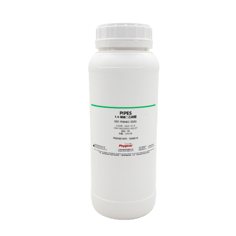 PIPES即Piperazine-1,4-bisethanesulfonic acid,中文名称哌嗪-1,4-二乙磺酸,分子式为C8H18N2O6S2,分子量为302.40,CAS Number 5625-37-6,是一种非离子两性缓冲剂, pH值在6.1~7.5范围具有较好的缓冲能力。