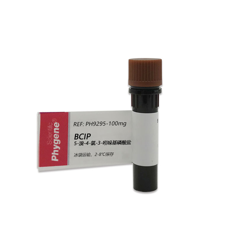 BCIP(BCIP p-toluidine salt; X-phosphate p-toluidine salt) is an artificial chromogenic substrate used for the sensitive colorimetric detection of alkaline phosphatase activity.