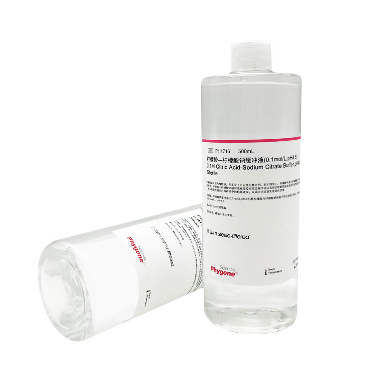柠檬酸—柠檬酸钠缓冲液(0.1mol/L,pH4.5)是柠檬酸与柠檬酸钠按照不同比例混合而得,其柠檬酸根浓度为0.1mol/L,pH=4.5。