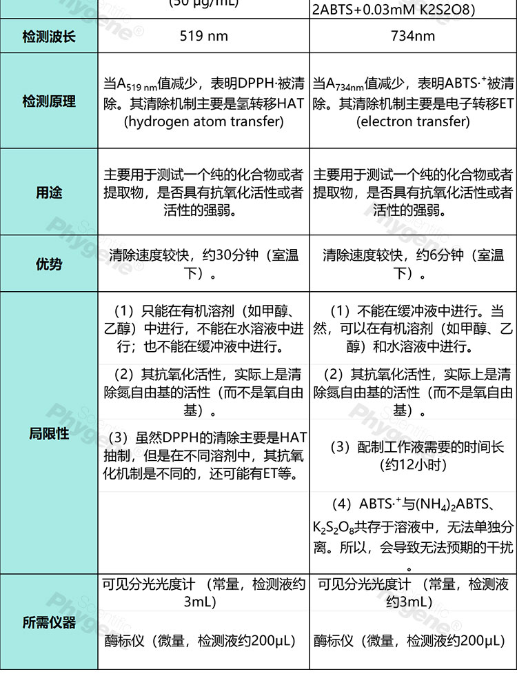 尽管这样,对于同样的样品、同样的浓度。DPPH和ABTS自由基清除率,会不同。这是因为,ABTS自由基比DPPH自由基更容易清除。换言之,对于同一个样品而言,清除DPPH的IC50值会大于清除ABTS的IC50值。