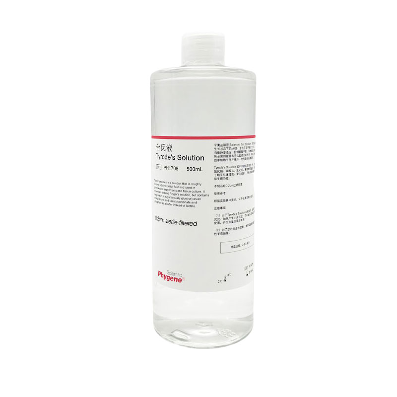 Tyrode's Solution 属于平衡盐溶液的一种,主要由氯化钠、磷酸盐、氯化钙、葡萄糖等组成,经常用于哺乳肌体灌流、清洗组织,并维持离体肠肌的正常生理功能。