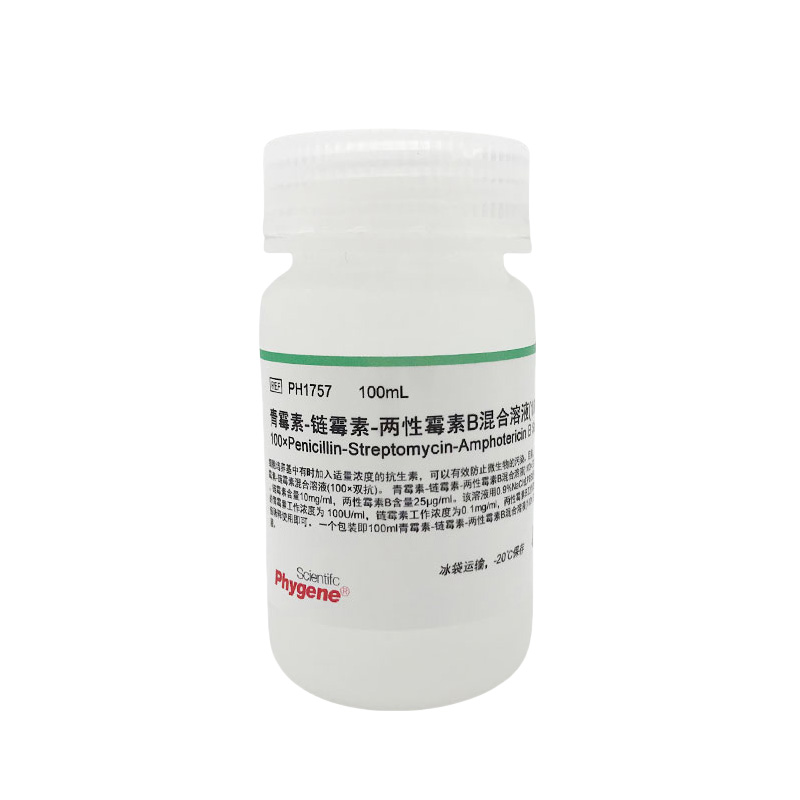 | 产品名称 : | PH1757 | 青霉素-链霉素-两性霉素B混合溶液(100×三抗) / 100×Penicillin-Streptomycin-Amphotericin B Solution |