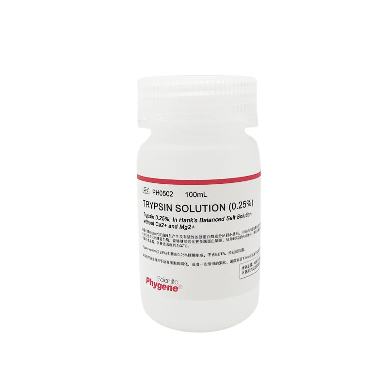 | 产品名称 : | PH0502 | 0.25%胰蛋白酶溶液 胰酶细胞消化液(1×)不含EDTA / 0.25% Trypsin Solution without EDTA |