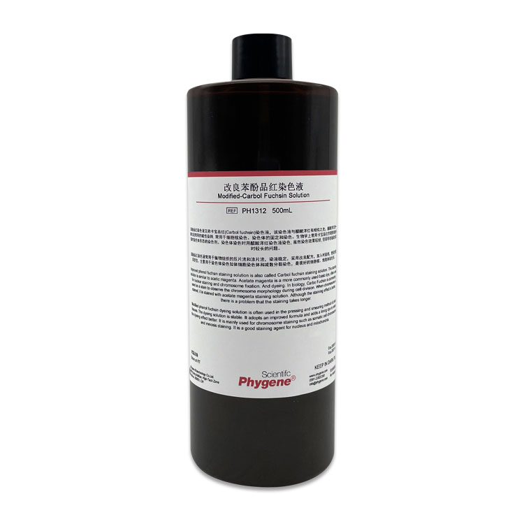 改良苯酚品红染色液常用于植物组织的压片法和涂片法,染液稳定,采用改良配方,加入衬染剂,使染色效果更佳。主要用于染色体染色如体细胞染色体和减数分裂染色,是很好的细胞核、线粒体染色剂。
