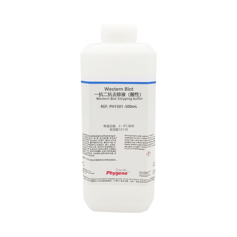 Western Blot Stripping buffer, also known as membrane regenerating solution or stripping solution, is used to reuse the antibody bound membrane in Western. This product uses an acid washing formula and does not contain organic reagents such as β-qiu based ethanol, which can quickly and effectively remove antibodies bound to the blotted film. Then different antibodies can be used for the next round of Western Blot experiment, so the same film can be used for multiple protein detection, which is suitable for multiple detection of different proteins in a small number of samples. Even if the sample size is not scarce, using this method to detect the protein on the same membrane several times, greatly saving time, and can eliminate the error caused by re-sampling.