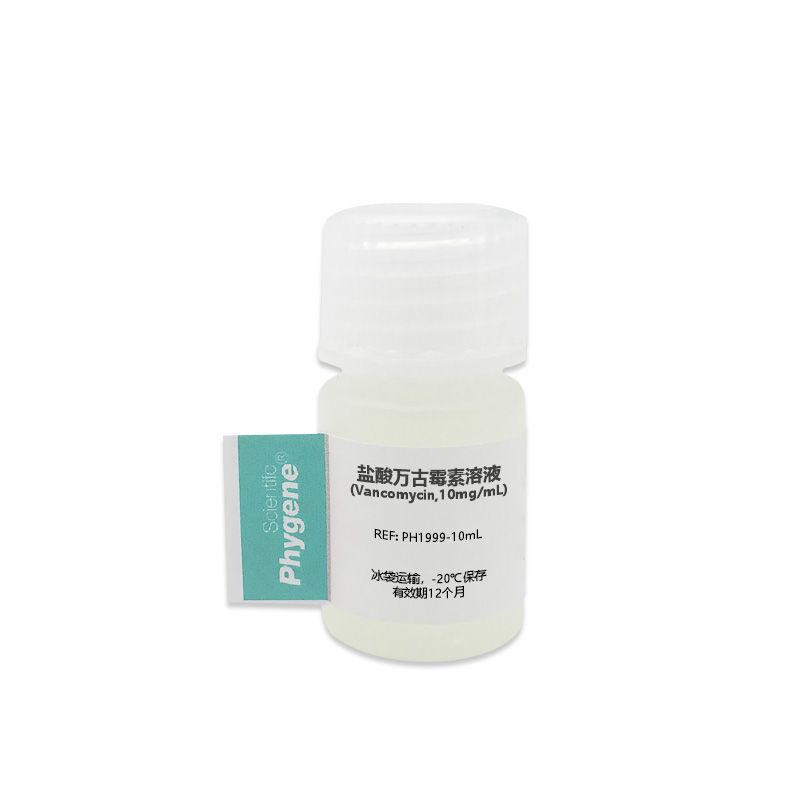 万古霉素(万古霉素)是由EC Kornfeld发现的一种糖肽类抗生素,CAS号为1404-90-6,分子量为1449.26,其抑菌原理是通过干扰细菌细胞壁结构中的一种关键组分来干扰细胞壁的合成,抑制细胞壁中磷脂和多肽的生成。万古霉素溶液(10mg/mL)由高纯度万古霉素和去离子水配置而成的储存液。