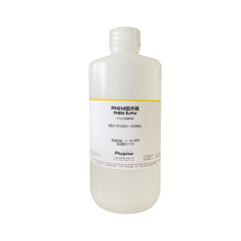 PHEM缓冲液(PIPES, HEPES, EGTA, MgSO4)非常适合于免疫细胞化学应用中组织和细胞培养的制备。与PBS相比,它能够更好地染色细胞内抗原,同时对生化反应和酶活性的影响最小。此外,PHEM还能很好地保存细胞超微结构,尤其是微管,这对电子显微镜样品制备至关重要。