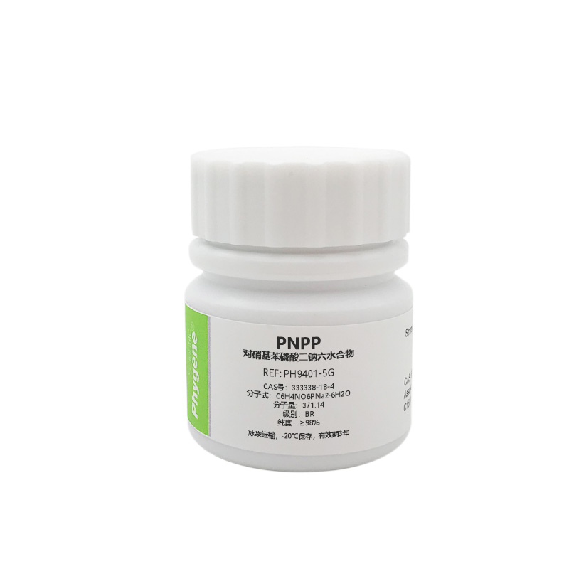 Disodium 4-Nitrophenyl Phosphate Hexahydrate(PNPP)4-硝基苯基磷酸二钠盐六水合物是酸性和碱性磷酸酶的发色底物,反应能产生黄色的4-硝基苯酚离子,在波长405 nm可以读取,该反应能被3 N NaOH溶液终止。
