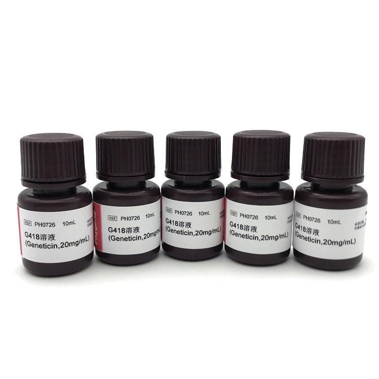 G418溶液经过滤除菌,一般工作浓度为50~1000ug/ml不等,然而不同类型的细胞需要根据实验确定最佳浓度。在具有相对稳定基因组的细胞(如CHO细胞)中,一旦筛选出稳定细胞株后,无需加入G418继续培养。