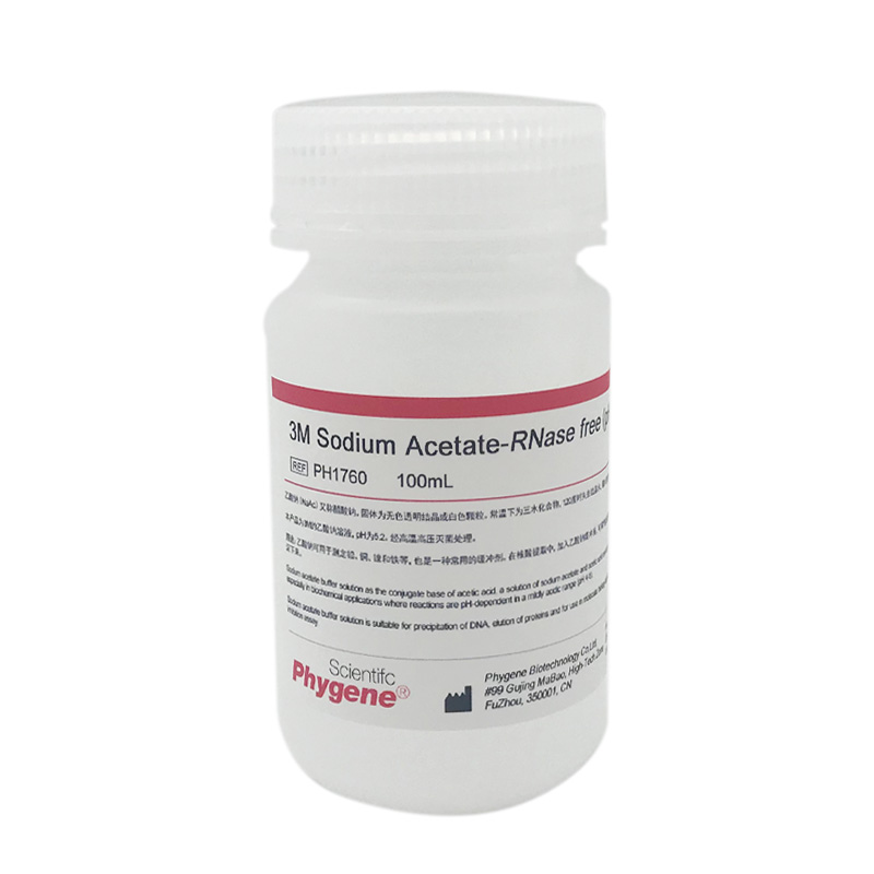 | 产品名称 : | PH1760 | 3M NaAc 醋酸钠 乙酸钠溶液 pH5.2 / 3M Sodium Acetate, RNase free, pH5.2 |