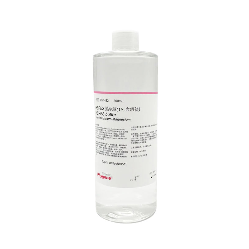 Phygene HEPES缓冲液(1×,含钙镁)是一种细胞-细胞黏附实验中常用溶液,主要由HEPES、氯化钠、氯化钾、磷酸盐、葡萄糖等组成,并含Ca2+、Mg2+,,pH7.4,经0.2um过滤处理。