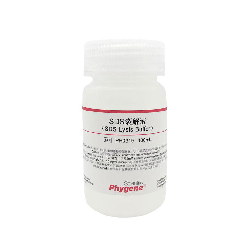 SDS裂解液(SDS Lysis Buffer)是一种比较强烈的细胞组织裂解液。SDS裂解液裂解得到的蛋白样品可以用于常规的Western、ChIP(染色质免疫共沉淀,chromatin immunoprecipitation)等。