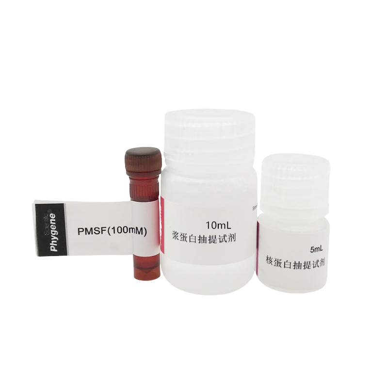 注意:裂解蛋白的所有步骤都需在冰上或 4℃进行。PMSF需要在抽提前2-3分钟内加入,以免PMSF在水溶液中很快失效。