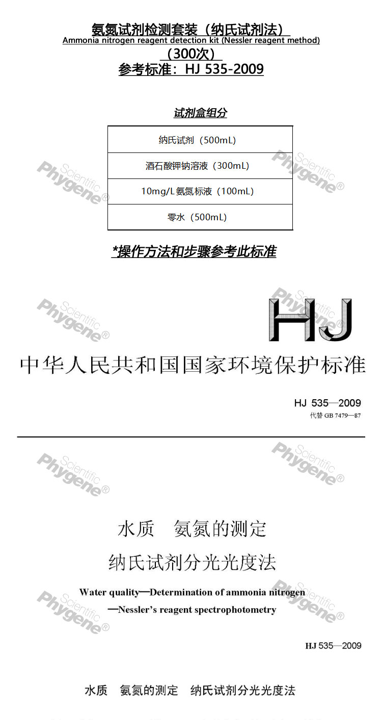 | 产品名称 : | PLM021 | 氨氮试剂检测套装(纳氏试剂法) Ammonia nitrogen reagent detection kit (Nessler reagent method) (300次) 参考标准:HJ535-2009 |