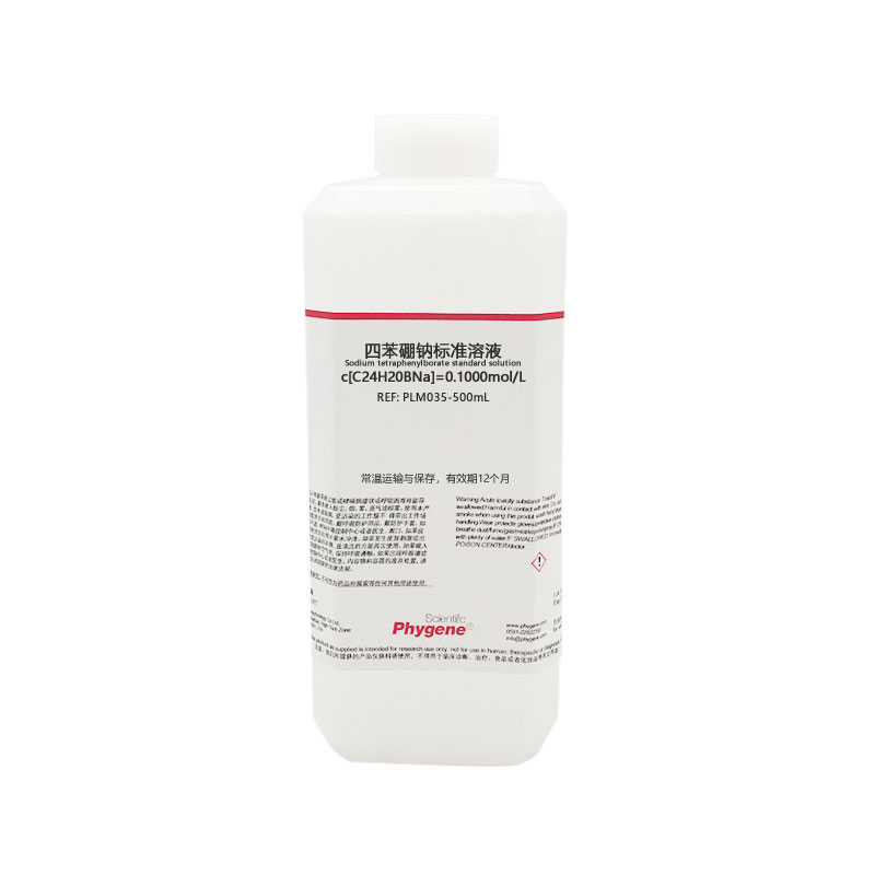 | 产品名称 : | PLM035 | 四苯硼钠标准溶液 Sodium tetraphenylborate standard solution c[C24H20BNa]=0.1mol/L |