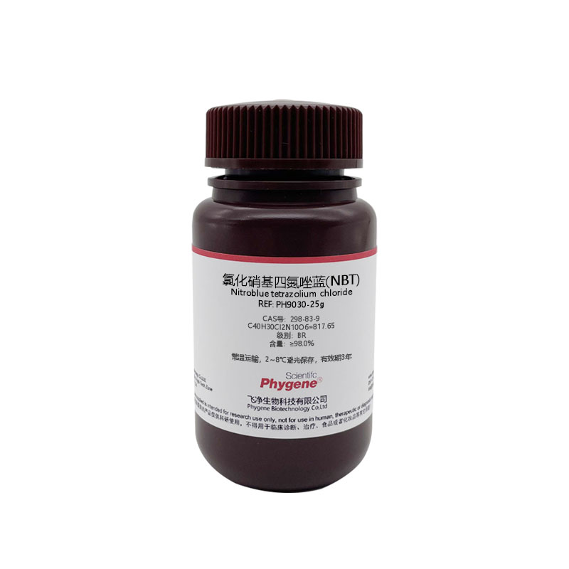 NBT was used to determine glucose-6-phosphate dehydrogenase. It is also a precipitating reagent of blood factor I (fibrinogen). It is also one of the substrates of alkaline phosphatase, which produces insoluble blue products under the catalysis of alkaline phosphatase. It is often used in immunohistochemistry (IHC), immunocytochemistry (ICC) and western blot (WB). Quantification of REDOX enzymes and steroid compounds. Determination of succinate dehydrogenase in histochemistry. Determination of isozymes in clinical chemistry. Used as a cell stain, it can be reduced to a blue-purple azo compound (Diformazan) by dehydroenzymes in malignant cells.