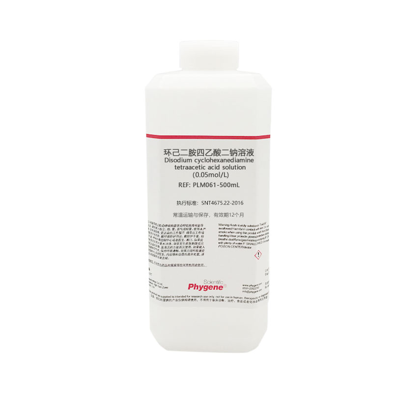 | 产品名称 : | PLM061 | 环己二胺四乙酸二钠溶液 Disodium cyclohexanediamine tetraacetic acid solution 执行标准:SNT4675.22-2016 |